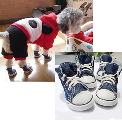 PRODUCT DESCRIPTIONS:Description: Pet Denim Canvas Breathable Slip-Resistant Wear-Resistant Shoes Specification: Material:jean Color:blue Size: size width length height 1 2.5CM 3.5CM 4.5 2 2.8CM 4.0CM 4.8 3 3.2CM 4.5CM 5.0 4 3.6CM 5.0CM 5.2 5 4.0CM 5.6CM 5.7 Tips For Measuring Dogâ€TMs Size: Package includes: 1 X Teddy Doggie Shoes