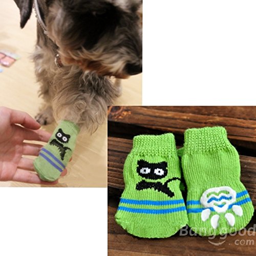 PRODUCT DESCRIPTIONS:Description: Cat Dog Socks Little Cat Pattern Anti-Slip Knit Weave Warm Pet Socks ?Good elastic, easy to take off or put on. ?Made from good quality cotton and spandex. ?Comfortable and warm for pet to wear, provide various of sizes. ?All socks are come with Non-slip sole to enhance grip. ?Reduce the risk of frostbite or slip during cold or rainy weather. Specification: Material: Cotton Color: Showed As The Picture Size: S / M / L / XL SIZE TOE WIDTH LENGTH WIDTH FIT FOR DOG S 3.0cm(1.18") 6.0cm(2.36") 2.5cm(0.98") <1.5 kilos M 3.5cm(1.38") 7.5cm(2.96") 3.0cm(1.18") <3.5 kilos L 4.0cm(1.57") 9.0cm(3.54") 3.5cm(1.38") <7.5 kilos XL 4.5cm(1.77") 11cm(4.33") 4.0cm(1.57") <10 kilos Package Includes: 1 x Set Anti-Slip Pet Socks (4 pcs)