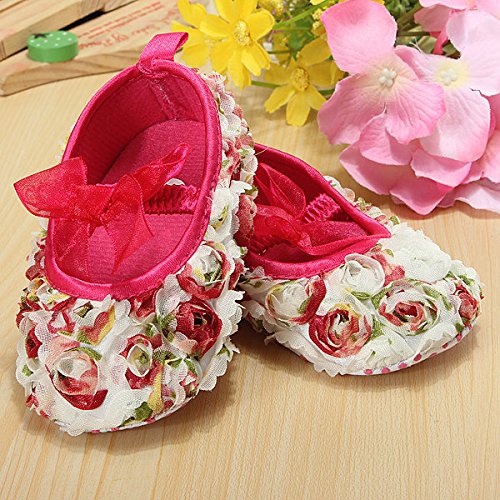 Coeus Baby Girl Infant Toddler Lace Flower Rose Bow Soft Crib Shoes