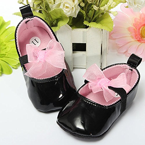 PRODUCT DESCRIPTIONS:Toddler Soft Sole Girls Bowknot Lace Baby Dress Shoes Description: Material: PU Leather Sole Material:Slipping Sole Color:Black Weight:30 Size Chart:(1inches=2.54cm) Package NO. Shoes Size Shoes Width Hight Fit months 11 11cm/4.33inches 5.0cm/1.96inches 3.5cm/1.381inches 0-6months 12 12cm/4.72inches 5.4cm/2.12inches 4.0cm/1.58inches 6-12months 13 13cm/5.12inches 5.7cm/2.24inches 4.0cm/1.58inches 12-18months Package Include: 1 pair of Baby Shoes (Without Box) Notice: 1. Due to the light and screen difference, the item's color may be slightly different from the pictures. Please understand. Make sure you don't mind before you bid. 2. Please allow 1-2cm differences due to manual measurement. If there is a size or colour choice please email me with your choice or it will be sent at random.