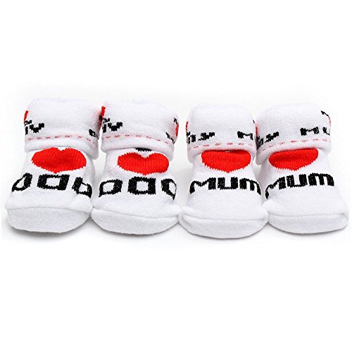PRODUCT DESCRIPTIONS:Description : Mom Dad Socks Newborn Baby Toddler Lovely Boys Girls Cotton Resistance Non Slip Outdoor Walking Accessories Winter necessary, cotton material keep your baby warm enough in this winter. Suits for newborn babies :D Specification : Fabric : Cotton Size : Fit for 0 to 6 months baby. Style : Love Mum(#2), Love Dad(#1). Weight : 25g Package Includes : 1 x A Pair of Baby Socks Details Pictures :